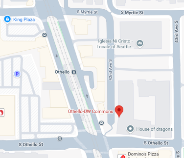 The Othello-UW Commons occupies a retail space in the Assemby 118 apartment complex. Our entrance is located on the west/MLK Jr. Way S. side of the building, north of the doors to the Assembly 118 apartments. We are directly across from the Metro Flex/Via stop along the cul-de-sac.